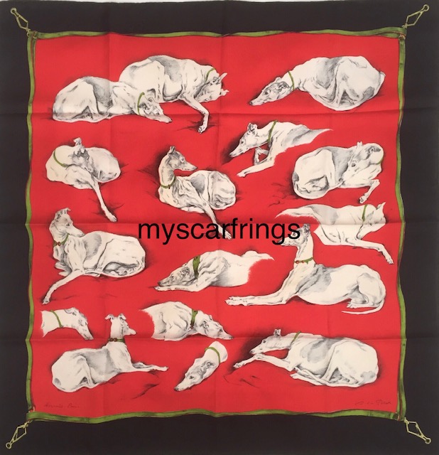 Hermes Les Levriers Vintage 90cm Silk Scarf myscarfringsApril 25, 2021Uncategorized Post navigation PreviousNext By Xavier de Poret, 1957 first issue edition. Care tag removed, in great vintage condition, softened silk. SOLD Share this: Click to share on X (Opens in new window) X Click to share on Facebook (Opens in new window) Facebook Like Loading... Related